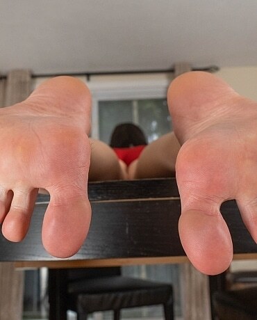 Becca puts her large, soft, sweaty, smelly size 11s in your face and holds your cock as she feels it grow stiff from the sensation of her wrinkly soles close enough to your face to sniff. She spreads open her flexible toes so you can get a good whiff of her scent while she strokes your bricked up dick. She holds her foot in front of your face close enough to stare at up close while her other foot stays on your face so you can sniff, kiss, lick, suck and indulge in all while keeping your dick swollen with her hands.